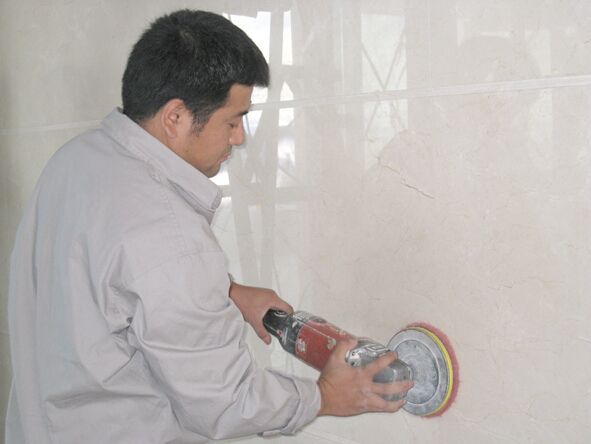 大理石翻新:根據(jù)大理石損壞程度的不同,使用專用的大理石翻新機(jī),從50-3000號(hào)的石材水磨片由粗到細(xì)對(duì)石材進(jìn)行研磨。打磨時(shí)必須遵守石材線路紋理由粗道細(xì)進(jìn)行打磨,直至石材表面平滑且色澤統(tǒng)一,光亮平整如新。